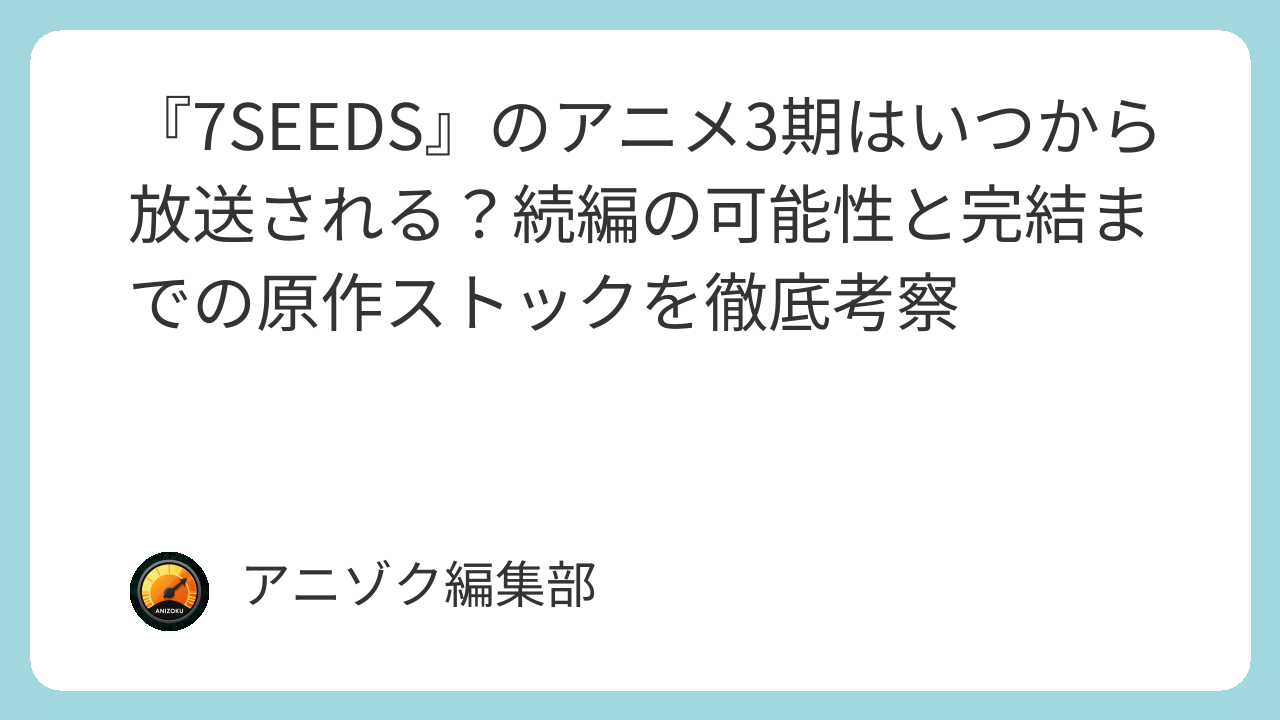 アニメ『7SEEDS』3期制作の可能性を左右する原作ストック状況