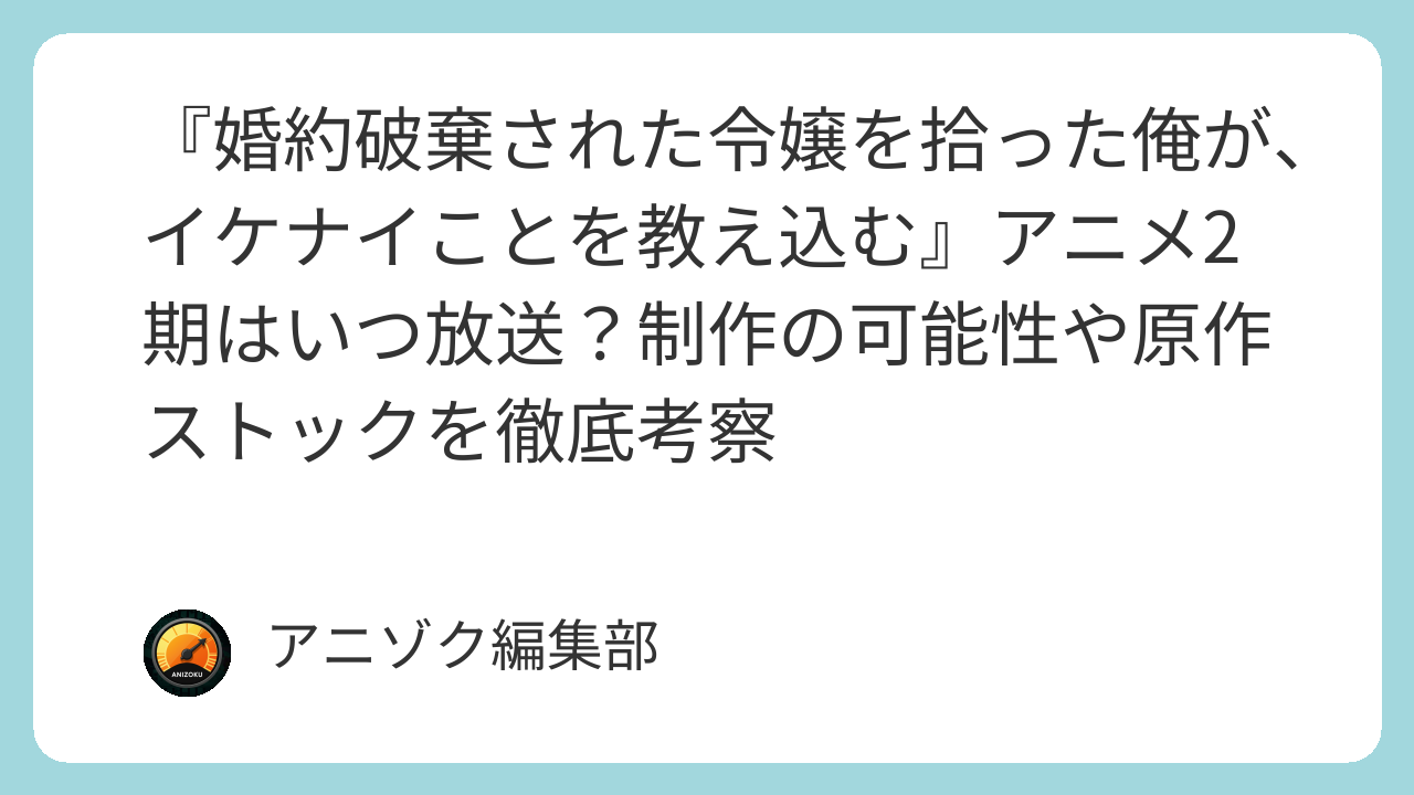 アニメ『婚約破棄された令嬢を拾った俺が、イケナイことを教え込む』第2期の放送時期が未定である事実は、ファンにとって寂しさを伴うものかもしれません。しかし、あえてポジティブに捉えるならば、この期間はシャーロットの最高に可愛い姿と、アレンの至高のデレを、一切の妥協なく最高の作画で届けるための大切な「準備期間」であると言えます。第1期のクオリティをさらに凌駕するような、眩いばかりの続編を制作するためには、相応の熟成が必要なのです。
