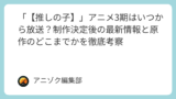 - 理由: ①原作漫画が完結済み、②制作会社A-1 Picturesが多忙、③優良な放送枠の消滅、という3つの決定的な理由があるため。