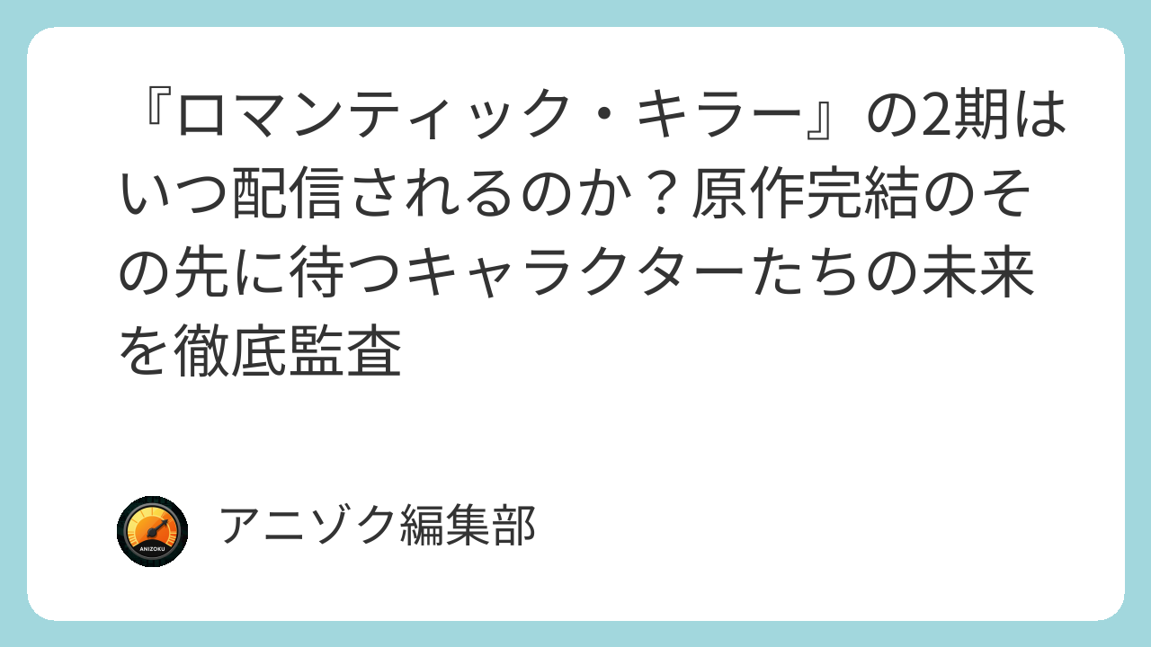 『ロマンティック・キラー』の2期が制作される可能性と2026年最新の放送状況を監査する