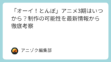 - 可能性: 制作会社オクルトノボルのスケジュールは逼迫しているが、完結済みの豊富な原作ストックと根強い人気から、将来的な続編制作の可能性は十分にある。