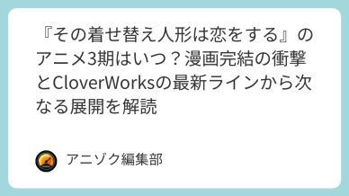 続編決定・期待したいアニメ一覧 『その着せ替え人形は恋をする』のアニメ3期はいつ?漫画完結の衝撃とCloverWorksの最新ラインから次なる展開を解読