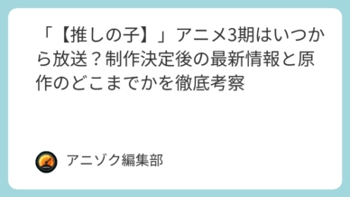 「【推しの子】」アニメ3期はいつから放送?制作決定後の最新情報と原作のどこまでかを徹底考察