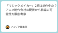 続編が制作されるかどうかを占う上で、最も重要な鍵を握るのは、アニメーション制作を担当した「EMTスクエアード」の制作状況です。