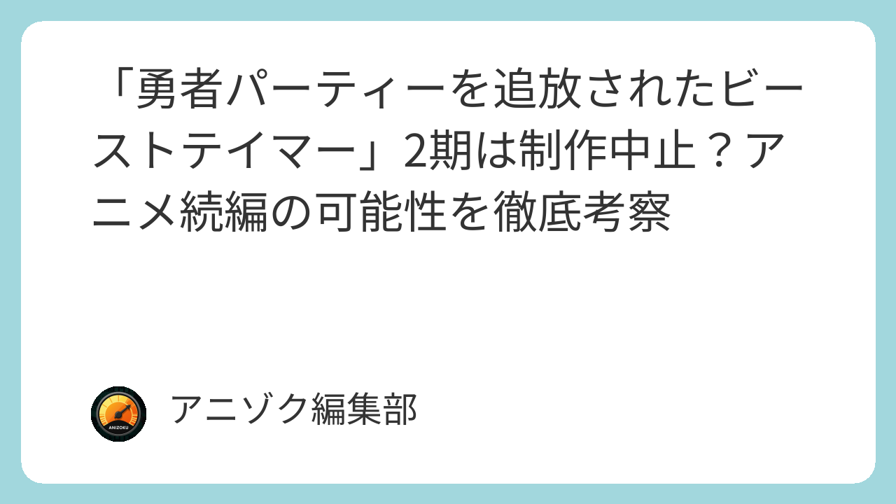 これだけの大型タイトルや期待の新作が並んでいるため、「ビーストテイマー」2期の制作ラインを確保するのが現時点では物理的に不可能な状況にあると推測されます。