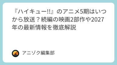 続編決定・期待したいアニメ一覧 『ハイキュー!!』のアニメ5期はいつから放送?続編の映画2部作や2027年の最新情報を徹底解説