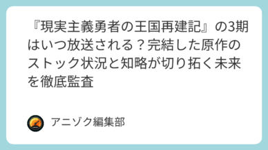 続編決定・期待したいアニメ一覧 『現実主義勇者の王国再建記』の3期はいつ放送される?完結した原作のストック状況と知略が切り拓く未来を徹底監査
