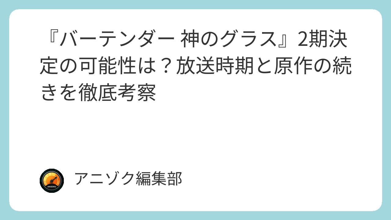 結論から申し上げますと、2026年1月現在、アニメ『バーテンダー 神のグラス』第2期の制作に関する公式発表は行われていません。