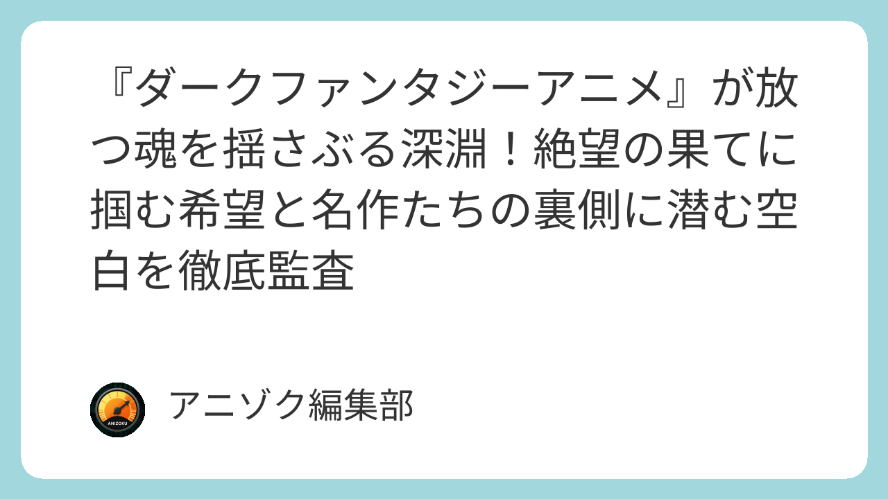 『ダークファンタジーアニメ』が放つ魂を揺さぶる深淵!絶望の果てに掴む希望と名作たちの裏側に潜む空白を徹底監査