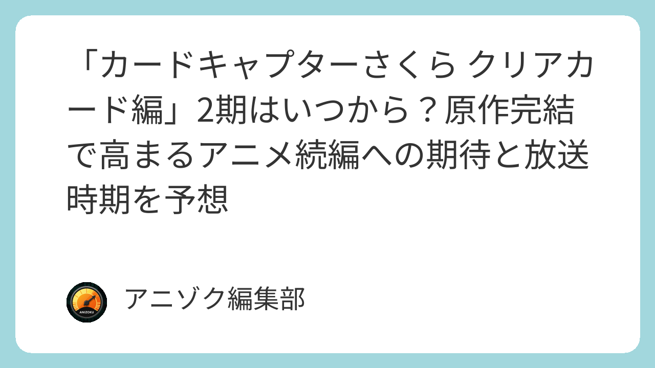 - 現状: アニメ「クリアカード編」続編(2期)の公式な制作発表はまだない。