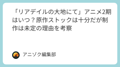 続編決定・期待したいアニメ一覧 「リアデイルの大地にて」アニメ2期はいつ?原作ストックは十分だが制作は未定の理由を考察