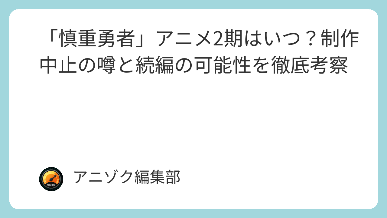 • 現状: アニメ「慎重勇者」2期の公式な制作発表はまだない。