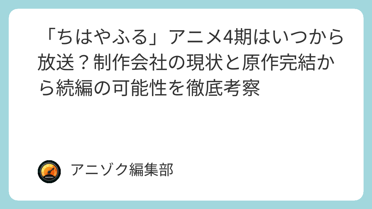 マッドハウスの制作ラインが2026年まで埋まっていることを考えると、もし「ちはやふる」4期の企画が動き出すとしても、それは早くとも2026年中頃以降になるでしょう。