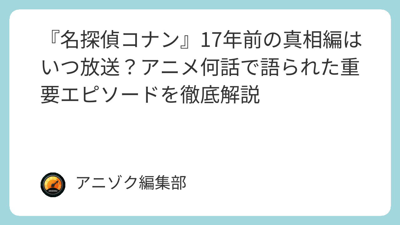 アニメ『名探偵コナン』の重要な過去エピソードに関するよくある質問