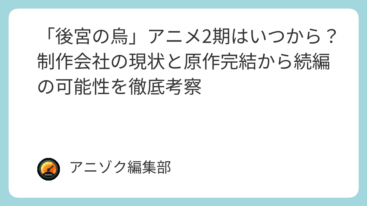 - 現状: アニメ「後宮の烏」2期の公式な制作発表はまだない。