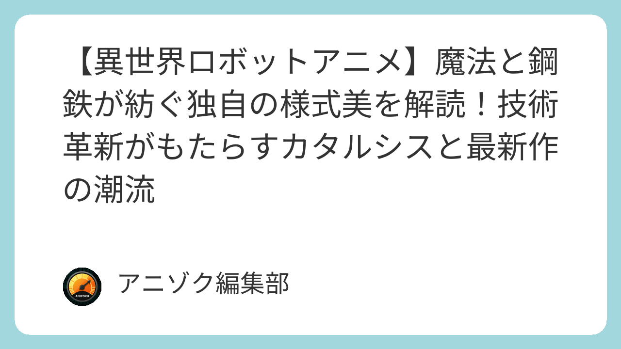 【異世界ロボットアニメ】魔法と鋼鉄が紡ぐ独自の様式美を解読!技術革新がもたらすカタルシスと最新作の潮流