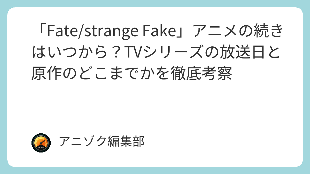 「Fate/strange Fake」アニメの続きはいつからですか?