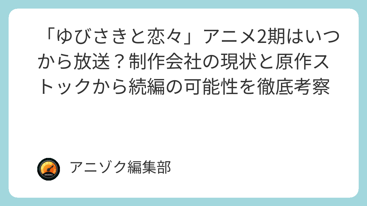 この記事では、「ゆびさきと恋々」のアニメ2期は実現するのか、その可能性をアニメ制作の鍵を握る制作会社「亜細亜堂」の動向を主軸に、原作の状況や商業的成功といった客観的なデータを基に、徹底的に考察・解説していきます。
