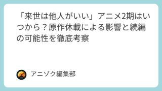 - もし仮に、近い将来に奇跡的に第2期制作が発表されたとしても、放送は早くても1年半から2年後以降になる可能性が高いでしょう。