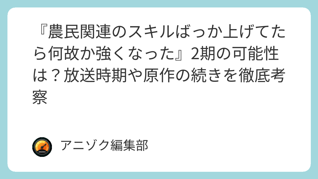 『農民関連のスキルばっか上げてたら何故か強くなった』2期の放送日はいつ?現状を分析