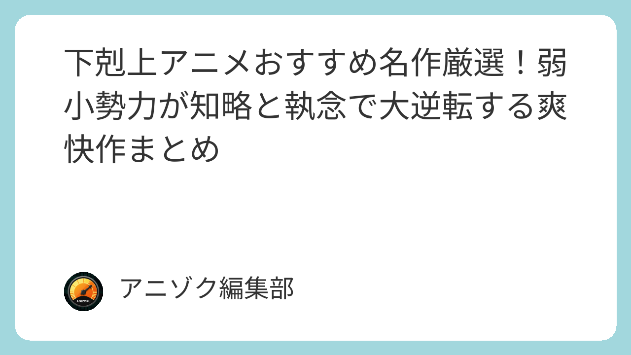 この記事では、下剋上アニメの金字塔から、現代のトレンドを反映した最新作まで、弱小勢力が大国や強者を圧倒するおすすめ名作を厳選してご紹介します。