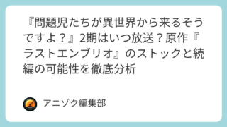 - 放送時期予想: もし制作される場合、2027年後半から2028年以降が現実的なライン。
