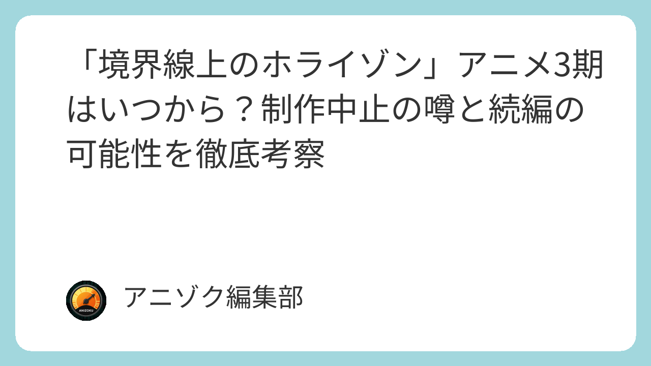 • 現状: アニメ「境界線上のホライゾン」3期の公式な制作発表はまだなく、可能性は極めて低い。