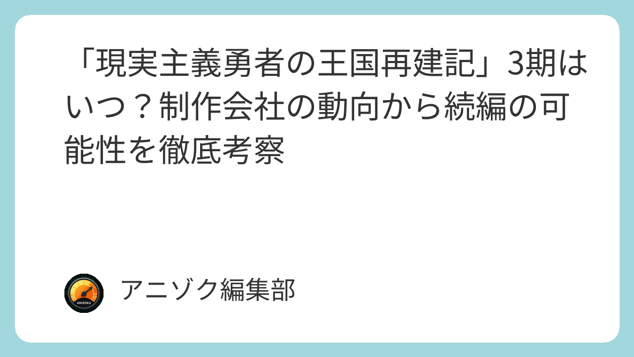 これだけの大型タイトルが並んでいるため、「現実主義勇者の王国再建記」3期の制作ラインを確保するのが現時点では非常に難しい状況にあると推測されます。