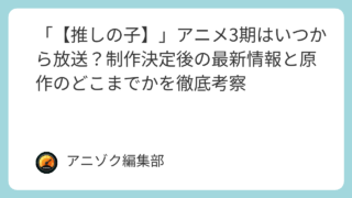 - 放送時期予想: もし制作される場合、過去のペースから2027年の春または夏クールが有力。