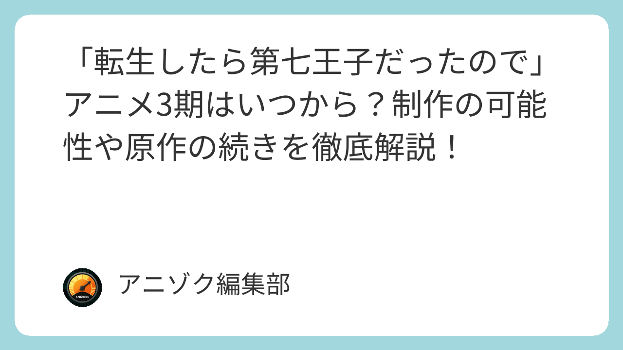 この記事では、アニメ「転生したら第七王子だったので、気ままに魔術を極めます」の続編(第3期)の可能性について、あらゆる角度から考察してきました。
