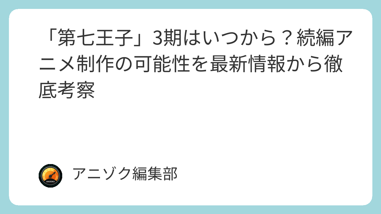 - 現状: アニメ「第七王子」3期の公式な制作発表はまだない。