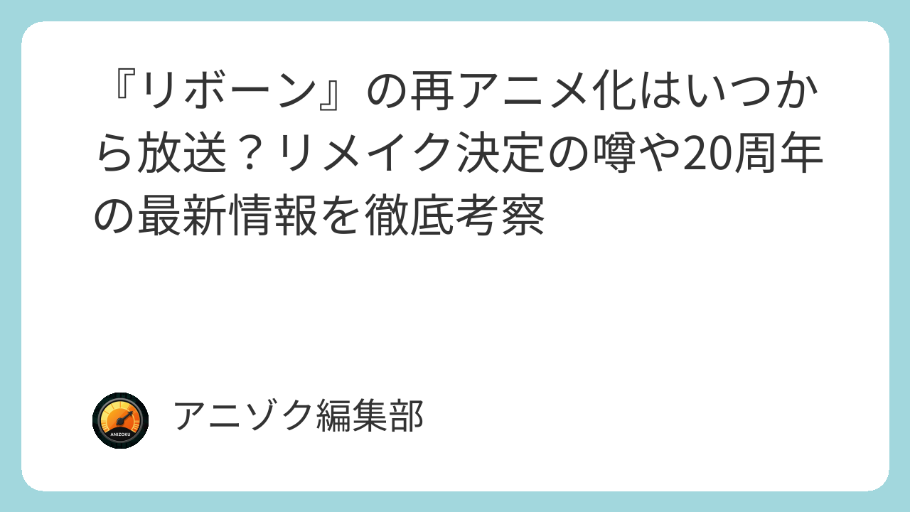 『リボーン』20周年の節目に期待される再アニメ化や今後の展開まとめ