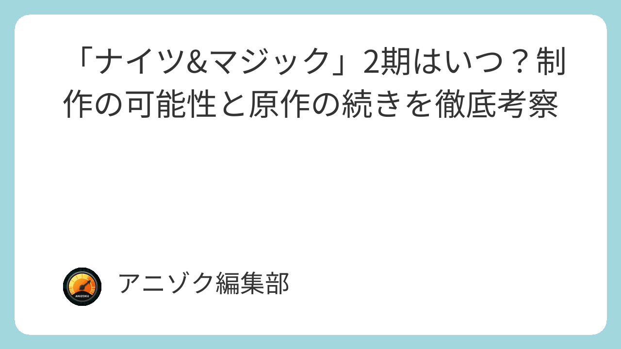 - 現状: アニメ「ナイツ&マジック」2期の公式な制作発表はまだなく、可能性は低い。
