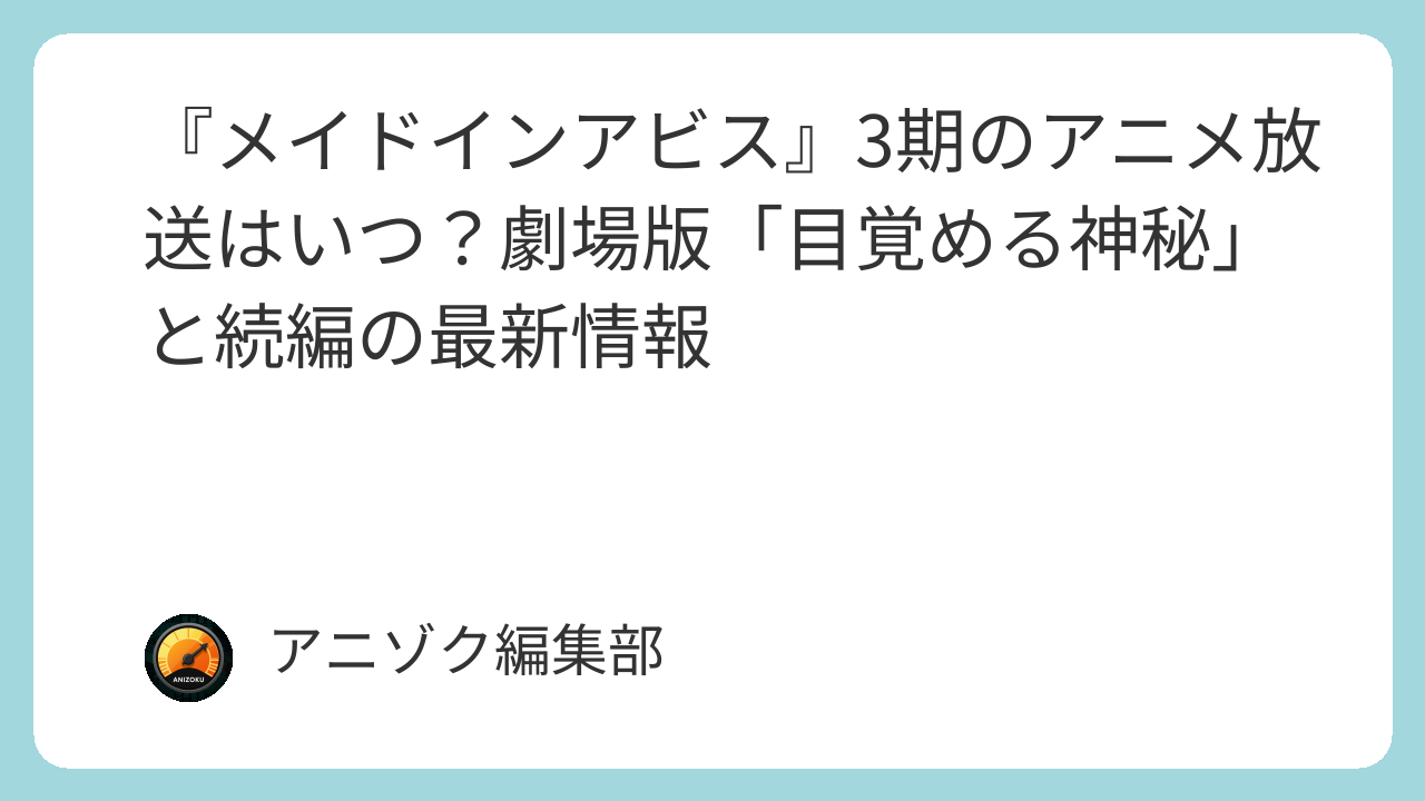 『メイドインアビス』という伝説的な物語が、2026年秋の劇場公開という形で再び動き出すことは、ファンにとってこれ以上ないほどの幸福といえます。TVアニメ第3期という形式ではなく、あえて「劇場シリーズ」という舞台を選んだ製作委員会の判断は、本作の持つ物語の密度と映像のクオリティを、妥協することなく最高級のものにするための英断です。第2期放送終了から今日まで、私たちは物語の終わりを心の中で待ちわびてきました。その待機期間は決して退屈なものではなく、本作が描こうとしてきた生命の尊さを、自分自身の中で深く咀嚼するための大切な時間であったと感じています。