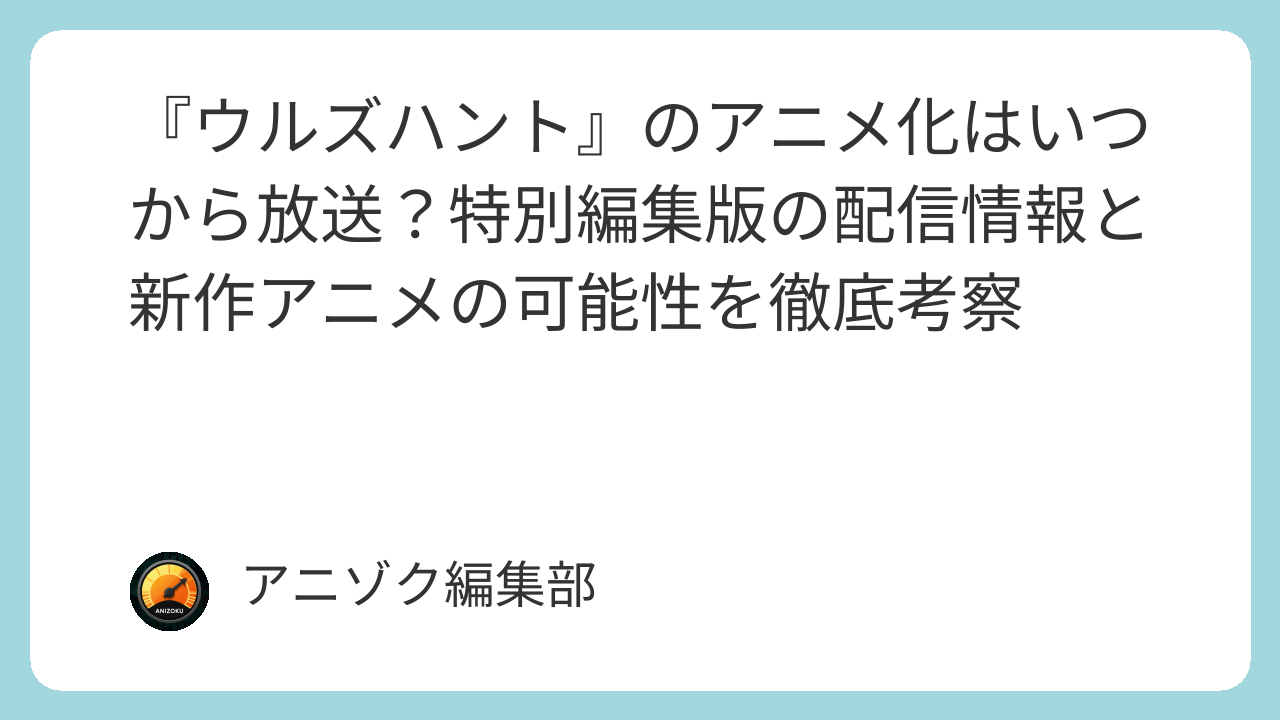 『ウルズハント』のアニメ化はいつから放送?特別編集版の配信情報と新作アニメの可能性を徹底考察