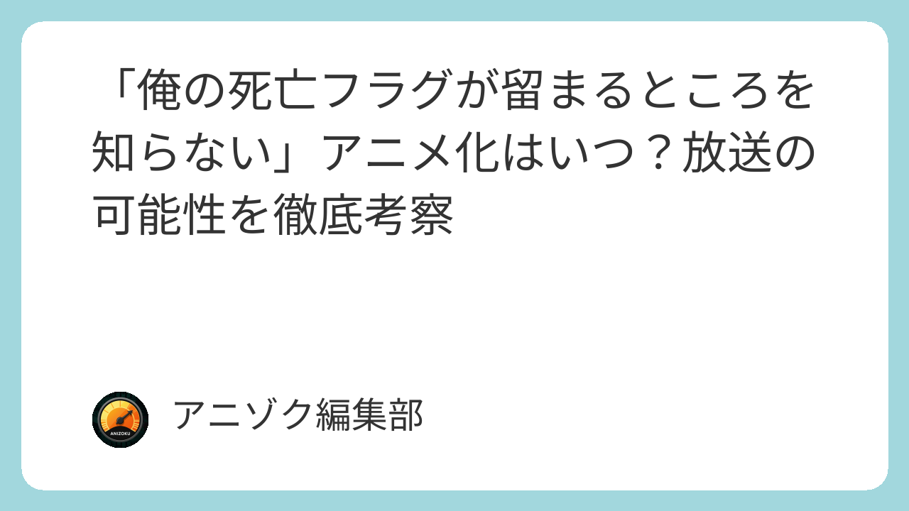 • 現状: 「俺の死亡フラグが留まるところを知らない」のアニメ化に関する公式な制作発表はまだない。