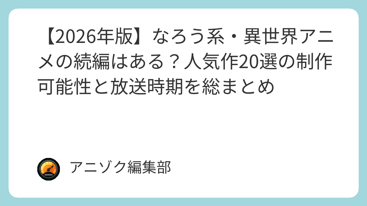 この記事では、当サイト「アニゾク」が総力を挙げて分析してきたなろう系・ライトノベル原作アニメの「続編(2期・3期以降)」の可能性と最新情報をまとめてご紹介します。