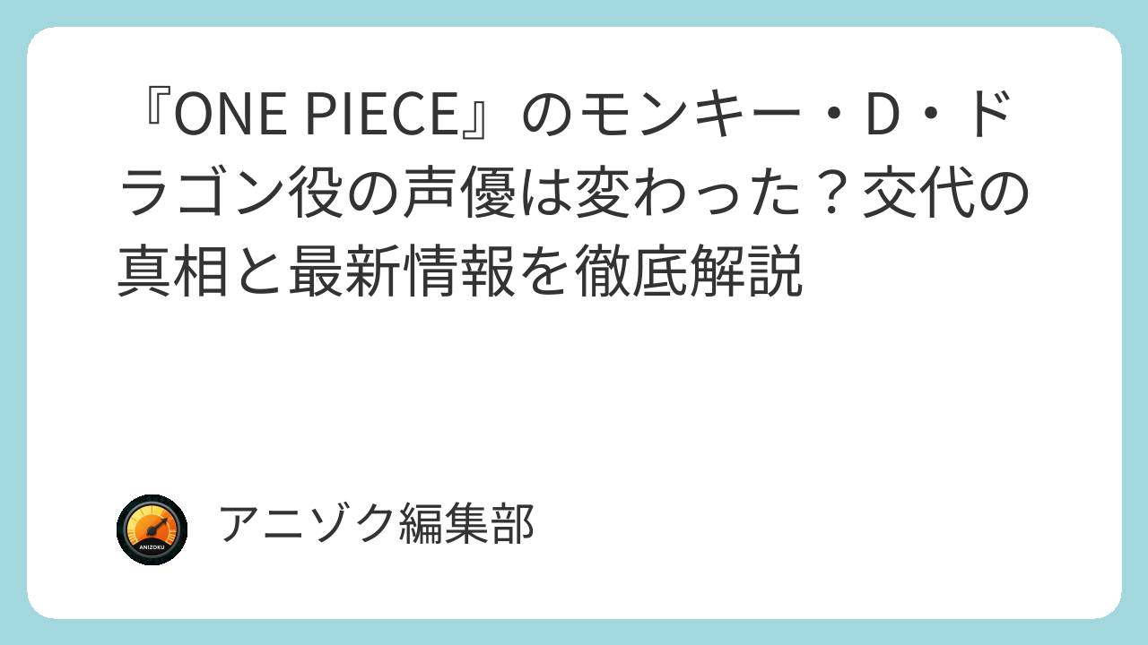 『ONE PIECE』のモンキー・D・ドラゴン役の声優は変わった?交代の真相と最新情報を徹底解説