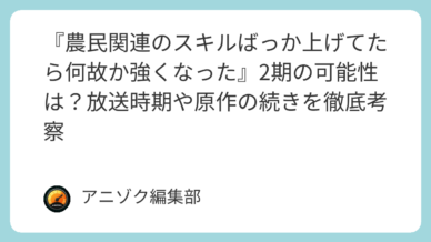 2025年1月から3月にかけて放送され、不遇な立場からの痛快な逆転劇で話題を呼んだアニメ「不遇職【鑑定士】が実は最強だった」。物語が佳境に入ったところで幕を下ろしたため、「2期はいつ放送されるの?」「...