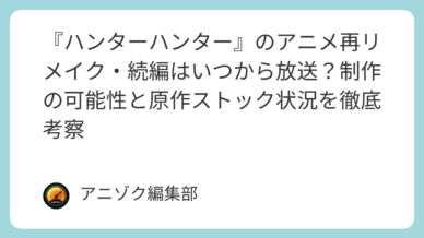続編決定・期待したいアニメ一覧 『ハンターハンター』のアニメ再リメイク・続編はいつから放送?制作の可能性と原作ストック状況を徹底考察