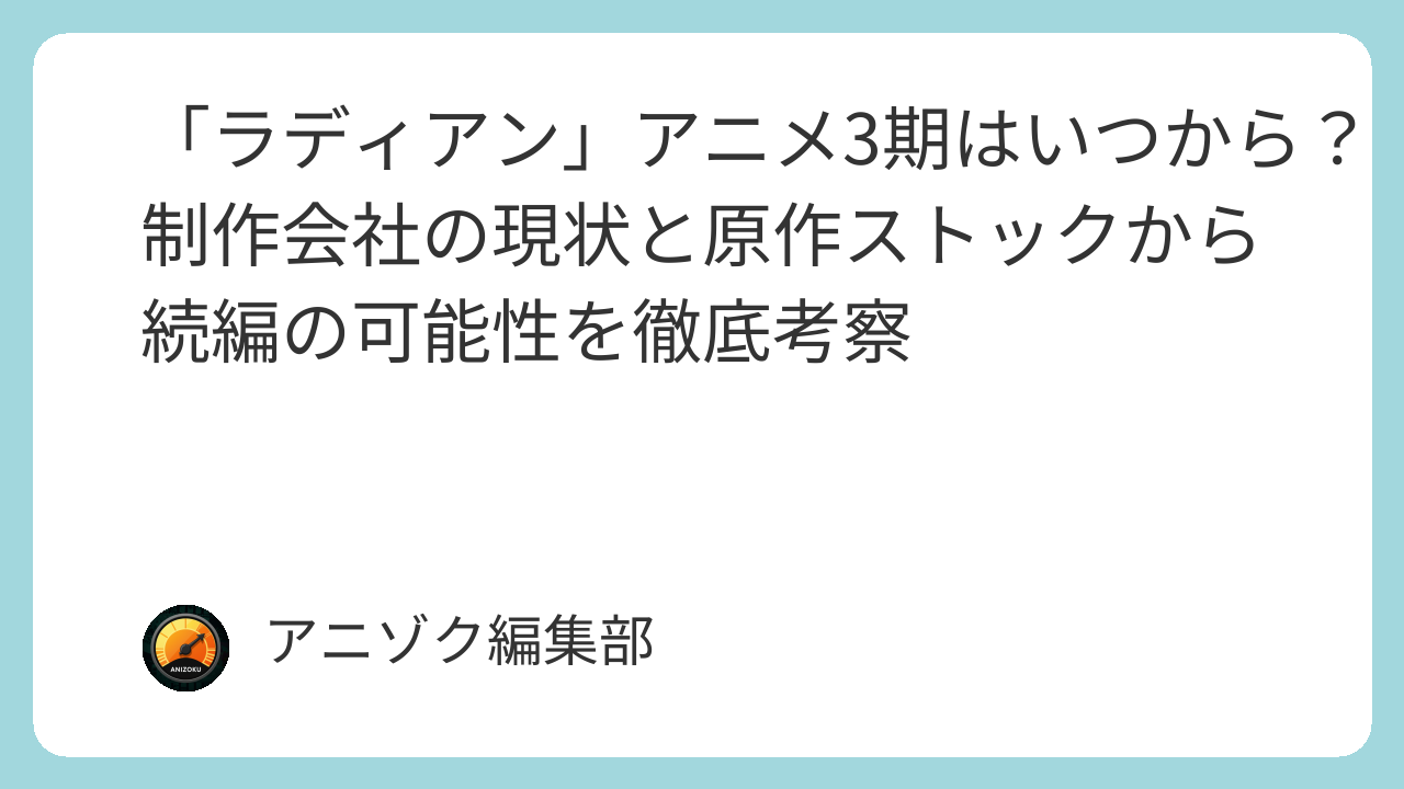 これだけの大型タイトルが並んでいるため、原作ストックが不十分な「ラディアン」3期の制作ラインを、最優先で確保するのは物理的に極めて困難な状況にあると推測されます。