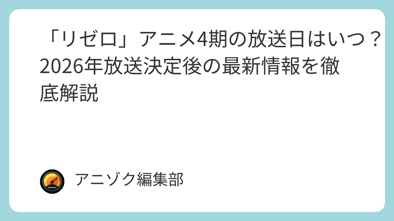 - 現状: アニメ「リゼロ」4期の制作は公式に決定済み。放送は2026年予定。