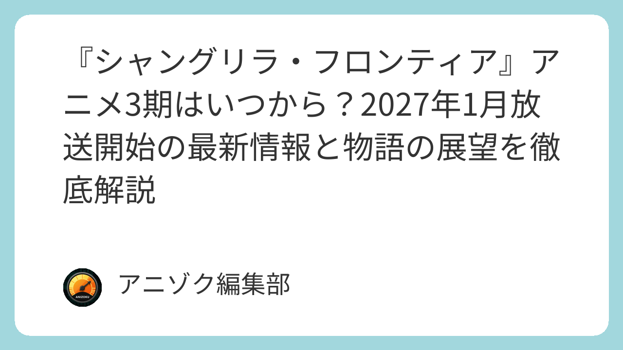 アニメ『シャングリラ・フロンティア』3期はいつから放送?最新の公式情報を整理