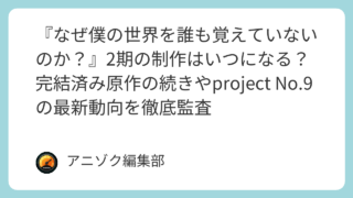 もし奇跡的に企画が再始動したとしても、ゼロジーのスケジュールが空く2027年以降に制作が開始され、一般的な制作期間(約1年半)を経て、放送(配信)は早くとも2028年後半以降という、非常に長期的な視点での予測となります。