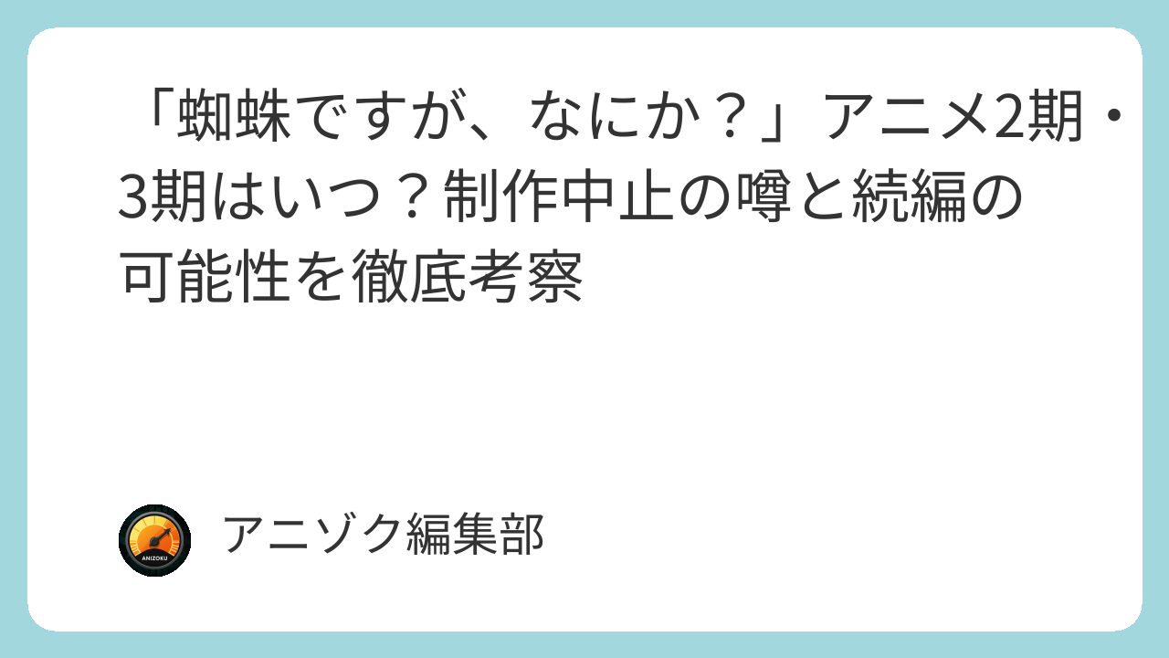 - 現状: アニメ「蜘蛛ですが、なにか?」2期・3期の公式な制作発表はまだなく、可能性は極めて低い。