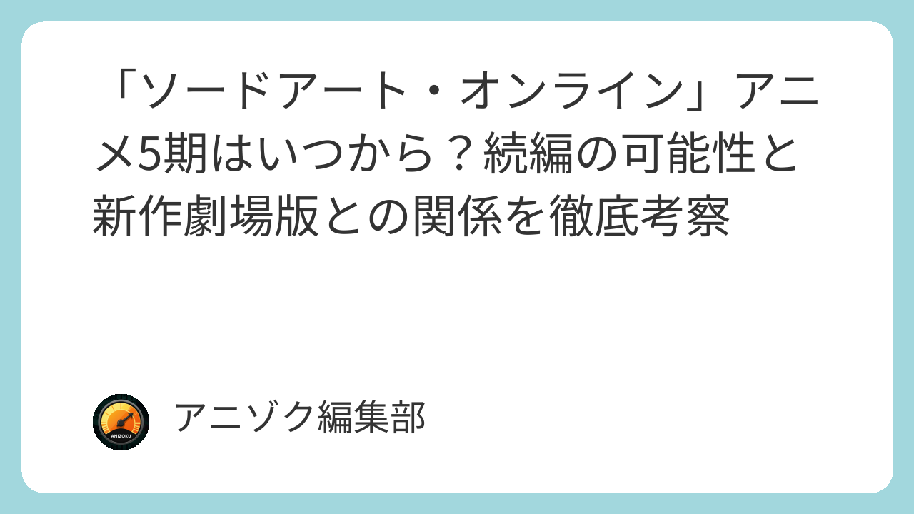 - 現状: アニメ「SAO」のTVシリーズ続編(通称5期)の公式な制作発表はまだない。