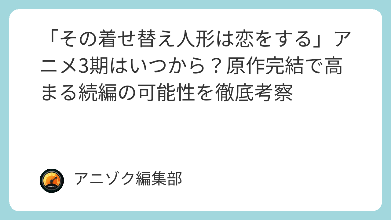 - 現状: アニメ「その着せ替え人形は恋をする」3期の公式な制作発表はまだない。