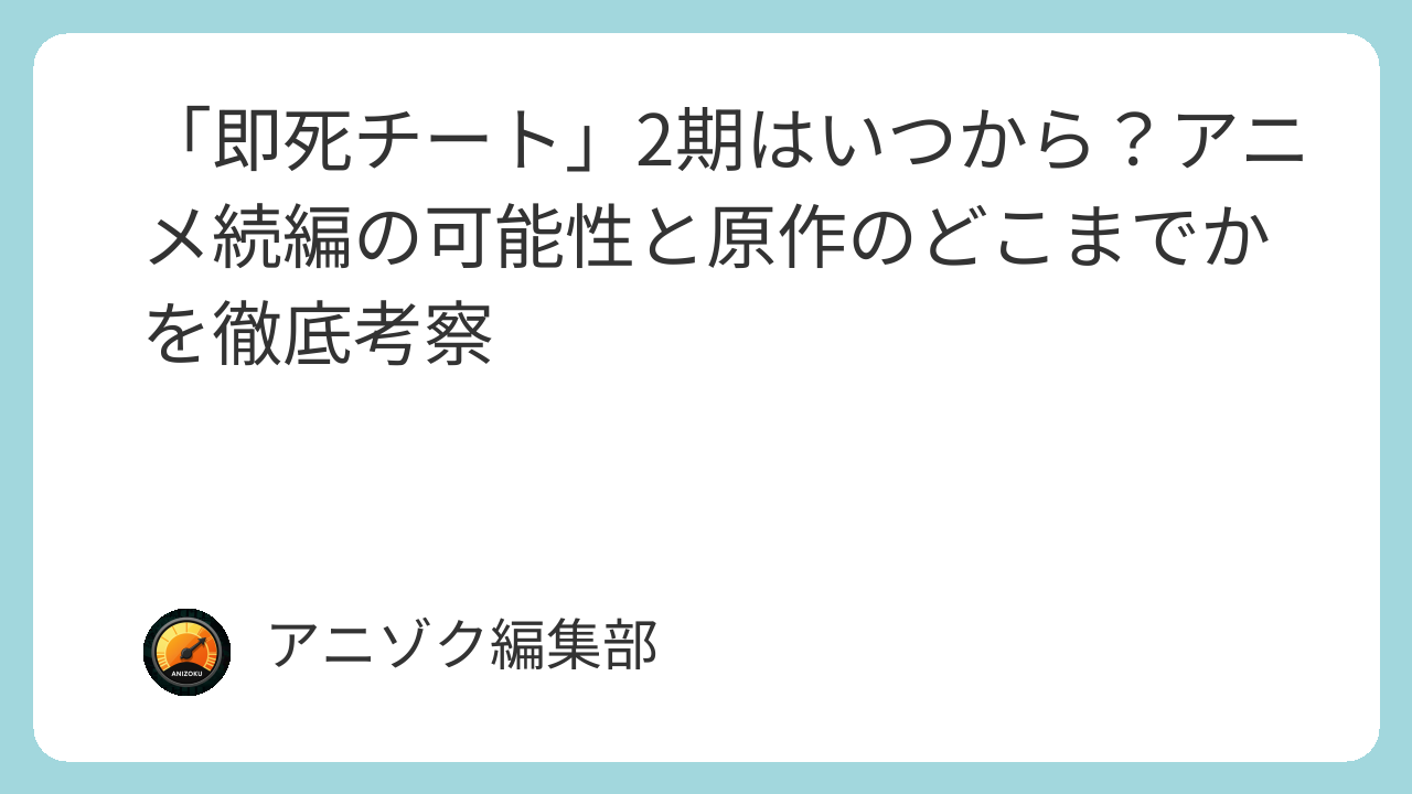 - 現状: アニメ「即死チート」2期の公式な制作発表はまだない。
