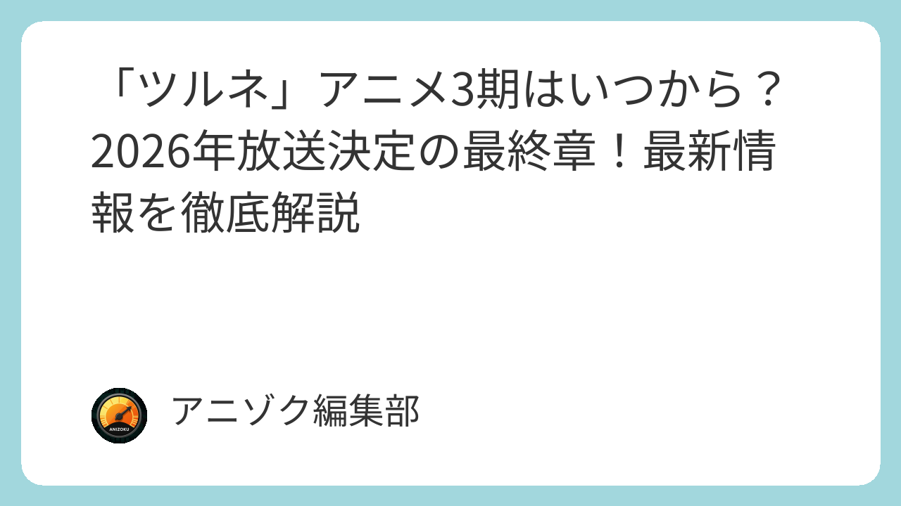 - 現状: アニメ「ツルネ」3期の制作は公式に決定済み。放送は2026年予定。