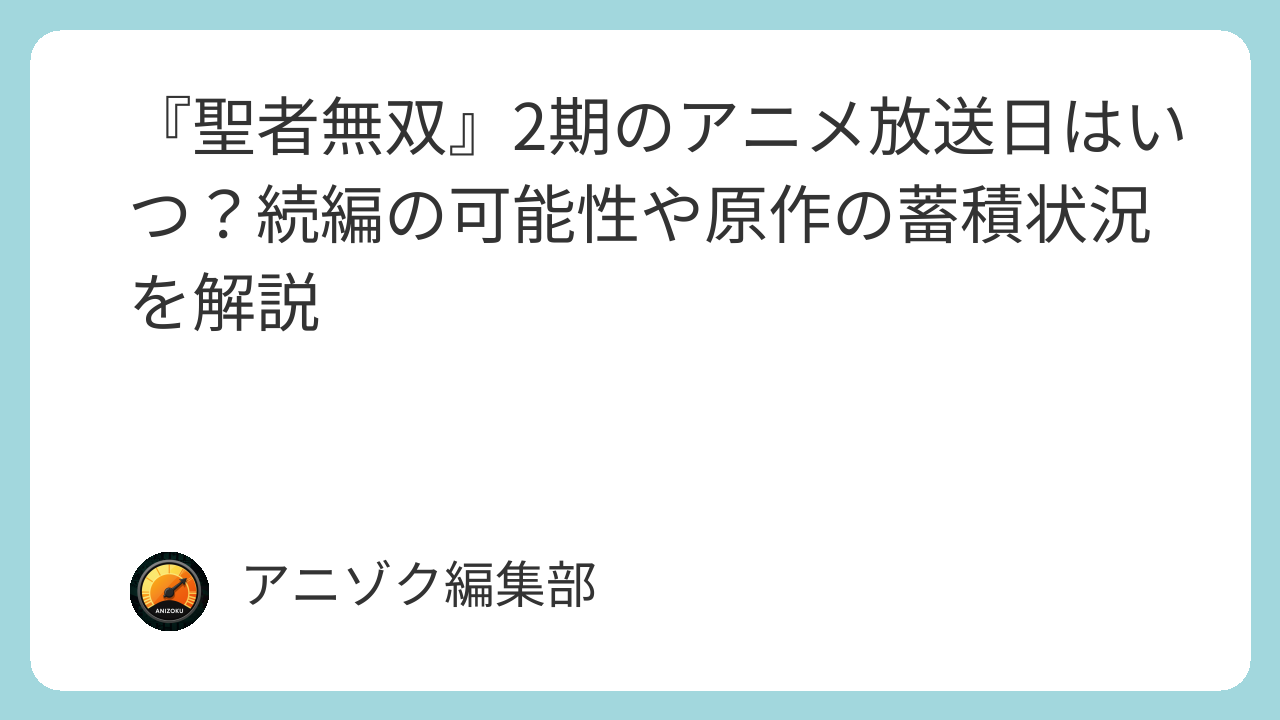 『聖者無双』のアニメ続編に関して多くのファンが抱く疑問